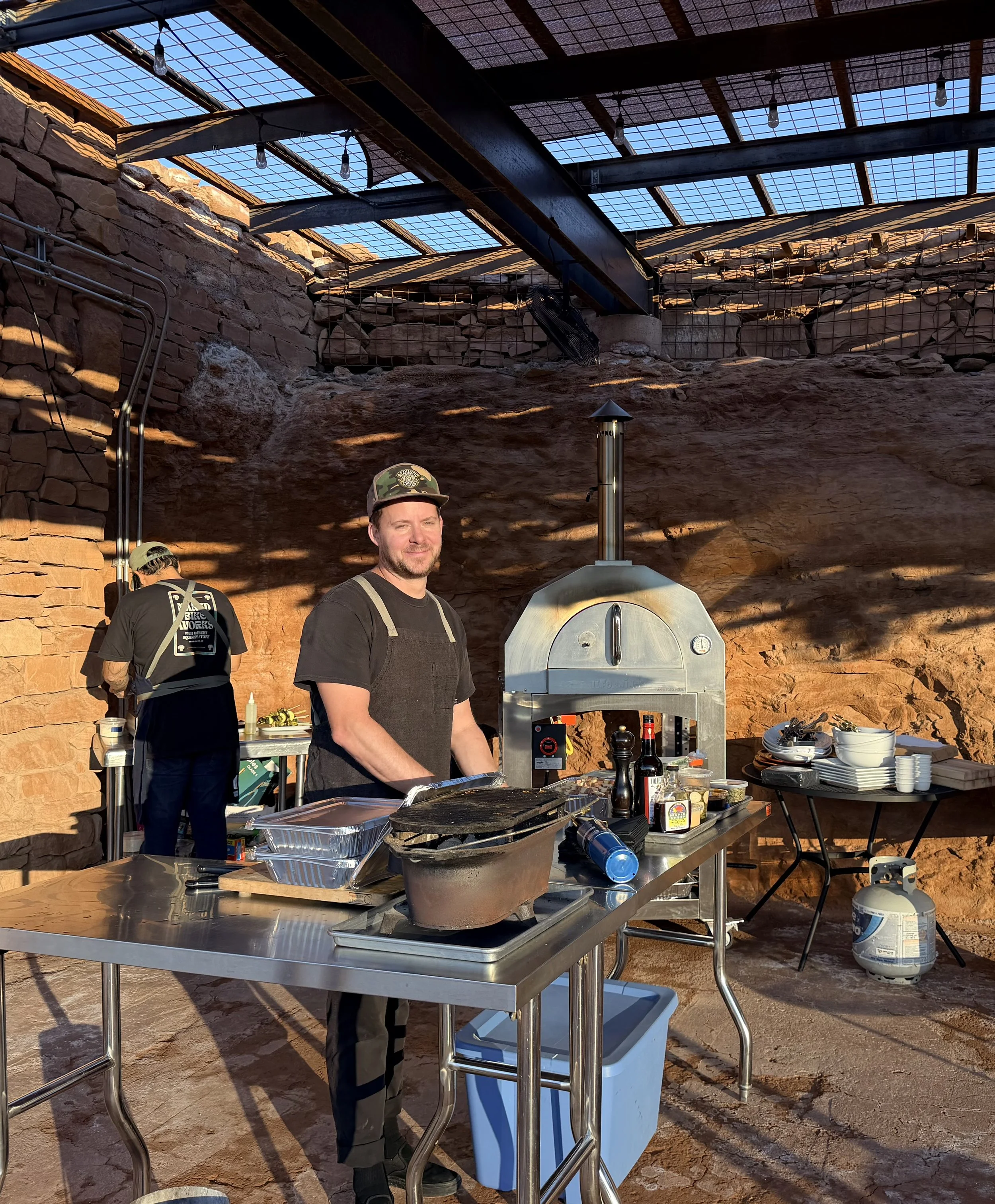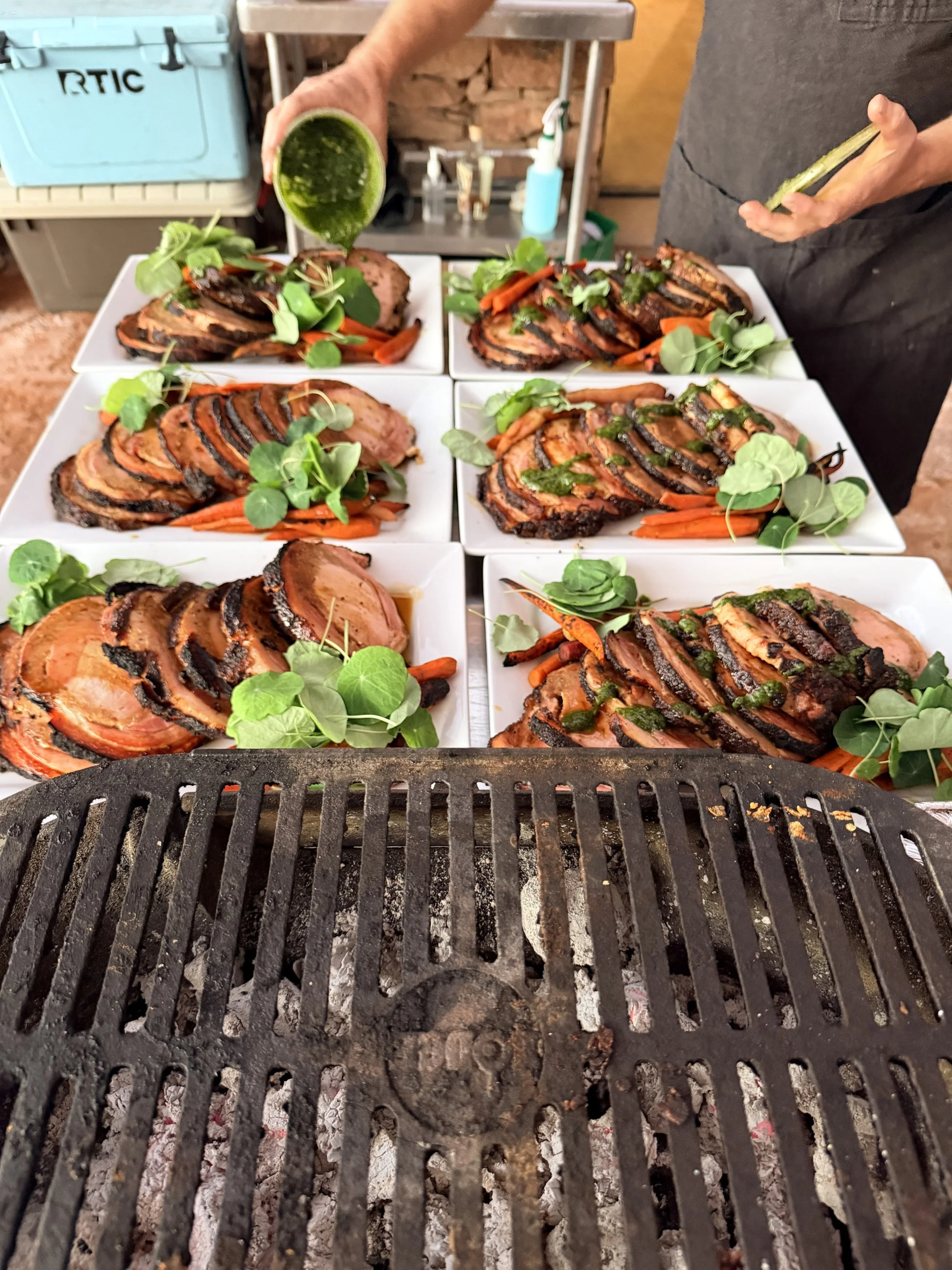 His gatherings range from intimate multi-course dinners in private homes to thoughtfully prepared meals served in wild, open landscapes, each menu shaped by the rhythms of the season and the work of local farmers and ranchers.